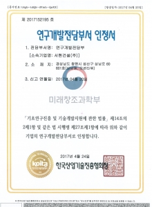연구개발전담부서 인증서