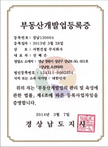 부동산개발업등록증