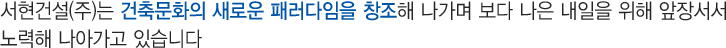 서현건설(주)의 건축사업은 독창적인 Paradigm으로 첨단 기술, 지식, 금융이